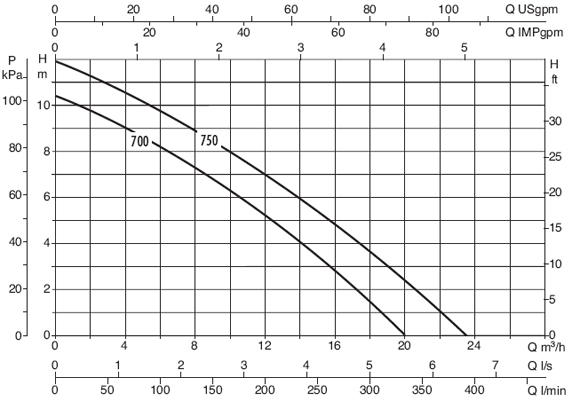 Рабочий диапазон: производительность — от 1 до 23,6 куб.м/ч, напор — до 12 м водяного столба.